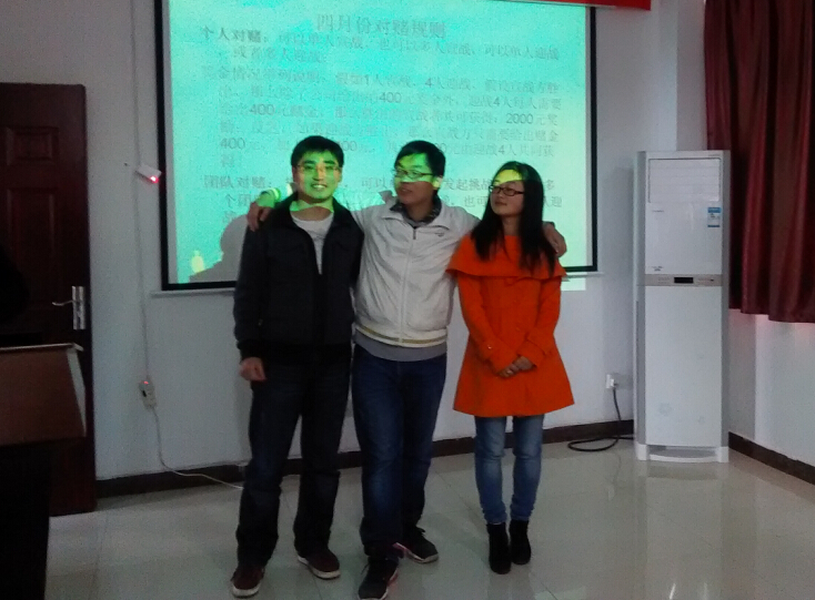 2015年4月3日于公司培訓(xùn)室召開月度銷售PK活動(dòng),活動(dòng)介紹了新來(lái)員工,評(píng)選出3月銷售前三名和團(tuán)隊(duì)銷售冠軍并開展了有益身心的小游戲,場(chǎng)面活潑,氛圍熱烈。